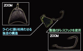 ■ボトムを積極的に狙える根掛かり防止機能着底時にフックポジションが上を向き、高いウィードレス効果を発揮、ストラクチャー回りを果敢に攻める事が可能です。